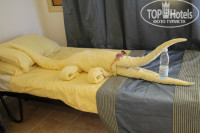 Заселение. Поселили нас , конечно же в 10 корпус с "прекрасным" видом на стройку аквапарка, но на следующее утро мы без проблем переехали в очень удобный по удаленности 12 корпус. Номер был отличный, можно сказать двухкомнатный, замечательная ванная комната размером с гостиную и балкон с видом на парк. Хотим отметить отличную работу уборщика, очень позитивного и милого человека. Уборка проводилась качественно, через день он радовал нас своим умением сделать из полотенец что-то необыкновенное) Не только банальных лебедей, но и крокодилов и даже обезьян. Вообщем - поднимал нам настроение).