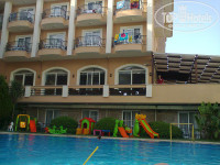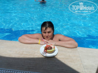 Здравствуйте! Впервые с мужем собрались посетить Турцию и, после долгих раздумий, выбрали этот отель (спокойный и семейный). Отдыхали 10 дней с 24.06.2014 по 04.06.2014 (летели с Пегасом). В отель прибыли в районе часа дня по местному времени. На рецепшене нас сразу одарили улыбкой, одели браслет и отправили обедать. Заселили в 14.00 с небольшой доплатой, так как у нас был забронирован 2-х местный номер, а нам предложили 3-х местный номер ( 2 кровати, 1 большая и одна маленькая) на 2 этаже с балконом ( большой плоский телевизор с 16 каналами, штук 5 из них русские, кондиционер, фен , сейф за отдельную плату в 20$, мини-бара не было, но мы его и не просили). В номере выполнен новый ремонт, все аккуратно прибрано (чистота и порядок), на полу красивый ковер, в ванной стеклянная душевая кабина, плитка. Остались более чем довольны все на 5 баллов. В номере убирались каждый день, меняли полотенца( и маленькие и большие). За символические чаевые, девушки уборщицы создавали приятный вид нашей кровати ( даже украшали цветами). Сервис супер! Персонал просто замечательный, отзывчивый, улыбчивый. Мальчишки официанты не дают задержаться вашей грязной посуде на столе во время еды и минуты. Питание разнообразное на твердую 4, голодными не останетесь: овощи, фрукты, рыба (шеф повар 1 день приготовил нам даже тунца) , курица, салатики и т.д. Сладости отдельная тема - пальчики оближешь. Огромное спасибо нашему шеф-повару! Выжимал из своего бюджета для отеля все, что мог. Море (добираться 3 мин. легким шагом) чистейшее, прозрачное, вход нормальный. У отеля свой пляж - шезлонги, лежаки, матрасы, даже если не хватит ( с нами такого не случалось) всегда можно занять место на пляже соседнего отеля. Минус это бар на пляже, от которого много не ждите, кофе и напитки типа Юпппи, но, в принципе, он нам и не был нужен. В отеле имеется бассейн с чистейшей водой, горка на которой катаются и взрослые и дети ( есть "лягушатник" для самых маленьких). Шезлонги, лежаки, матрасы, столики. Бар в который начинает работать с 10.00 до 18.00 в котором вы можете взять прохладительные безалкогольные напитки местного производства ( спрайт, фанта и т.д), а также вполне сносный алкоголь ( пиво, вино, водка). Отдельное спасибо Метину и его малочисленному персоналу(найдете рядом с баром) за его наивкуснейшее мороженое в дыне (обязательно попробуйте), свежевыжатые соки. В отеле есть еще два бара: один в ресторане (работает во время завтрака, обеда, и ужина), второй находиться на терассе (работает с утра и до 24.00), алкоголь наливают до 22.00. Если нужно отдохнуть можно перейти дорогу и посидеть в одном из 2-х баров ( в баре Ci-Ci по вечерам, всегда играет живая музыка), либо прокатиться до ночного клуба, в который туда и обратно вас доставляют. Территория отеля хоть и небольшая, но зеленая и опрятная. Присутствуют игрушки для детей, разные горки, лошадки. Аниматоры просто супер, огненное шоу, небольшие конкурсы. Играли в водное поло, уже по нашему отъезду начали проводить водную аэробику. В 21.00 до 21.30 каждый день замечательная детская дискотека. Родители, милые, принимайте участие вместе со своими детьми - от этого только веселее и ярче мероприятие. Потом до 23.00 можно уже взрослым устраивать себе дискотеку. Отдельное спасибо турецкому хамаму. Администратору Ольге и массажистам, Вулкану и Осману. Как и обещала передаю Вам огромный привет!!!Парни, вы супер!!!Об