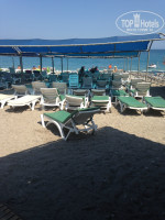 - До пляжа идти 6 минут бодрым шагом, по размерам не особо большой - достаточно тесно, но есть ещё намного хуже. Мелкая галька. Пляж граничит слева и справа со стоянкой катеров, которые катают на парашюте отдыхающих, что не особо комфортно. Утром пляж забит битком, некоторым из тех, кто опаздывал не хватало лежаков. Лежаки и матрасы бесплатны, но их нужно каждое утро самостоятельно разбирать и таскать. На пляже есть охрана, вода и соки "юпи". После обеда пляж заполнен чуть меньше чем на треть. Впервые видел, чтобы вместе с отдающимися купались официанты с Шекера... также приходят и безотельные отдыхающие. С соседних пятизвездочных отелей чужих сгоняют.