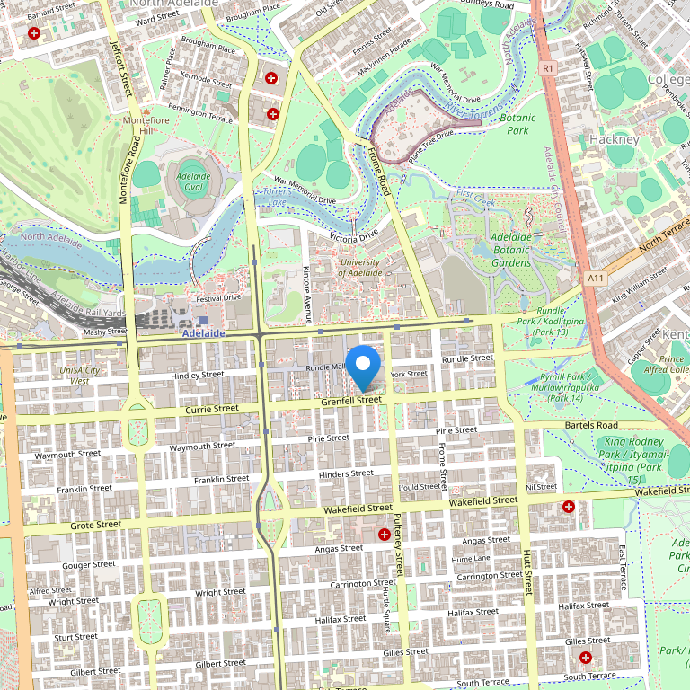Отель расположен в оживленном городе Аделаида, в нескольких минутах ходьбы от Adelaide Convention Center, казино Sky City, культурно-развлекательных центров, недалеко от Cricket Ground, поля для гольфа, парковой зоны Rymill и автодрома V8 Supercar.