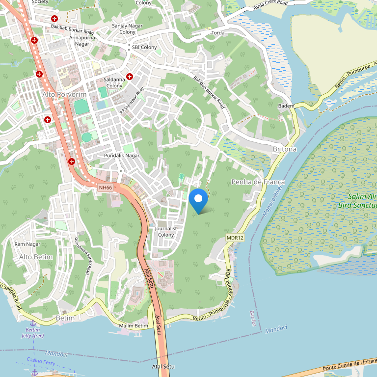Отель расположен в 4 км от столицы Панаджи и в 7 км от пляжа Калангут, в пределах пешей доступности от основных туристически привлекательных мест города.