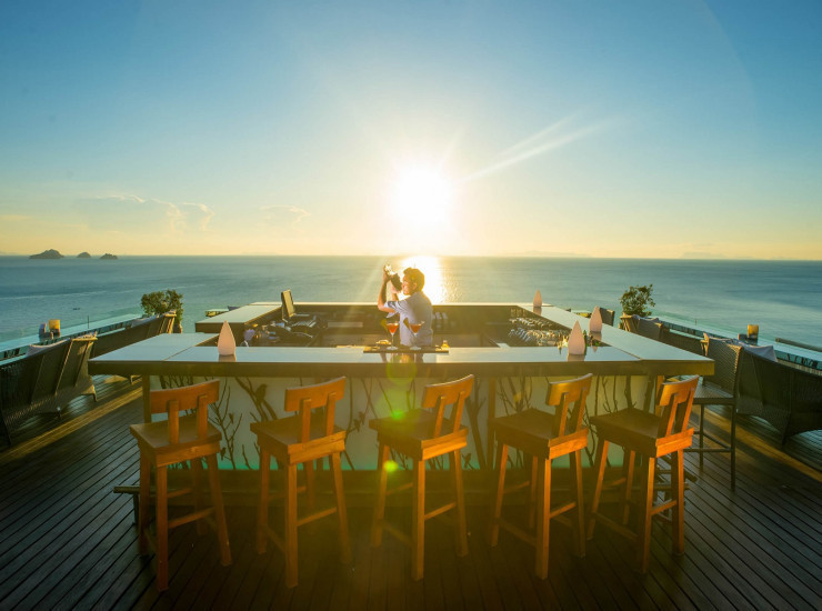 Serves a range of modern European dishes against a panoramic ocean backdrop. Themed around the idea of ‘Fire’, freshly-caught seafood and the finest cuts of meat are cooked according to your chosen style of flamed, grilled, baked or barbecued. An outdoor lounge area provides guests with a more relaxed setting to enjoy the same fine dining menu under the stars. A Thai innovative option is also available.