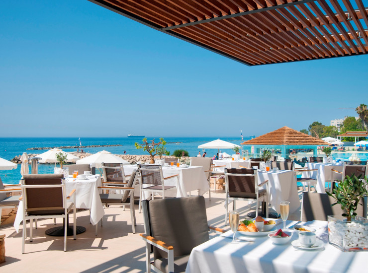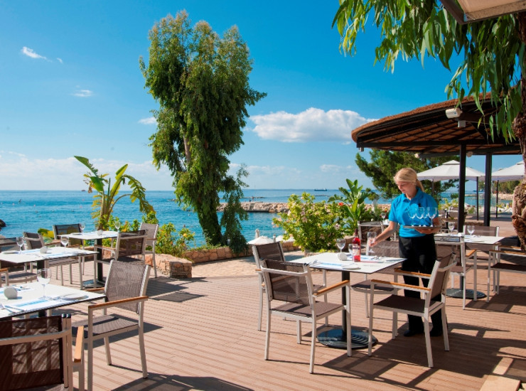 With its show cooking and imaginative buffets, the Dionysos is the main restaurant in the hotel, offering panoramic views of the sparkling Mediterranean, serving breakfast and dinner daily.