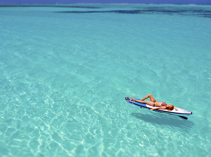 Water Villa (Водная вилла) - 73м2, спальня с гостиной зоной, ванная комната: душ; терраса: зона отдыха, обеденная зона, прямой спуск в лагуну; макс 3 чел.Водные виллысгруппированныв блоки по 2 номера. номера без реновации