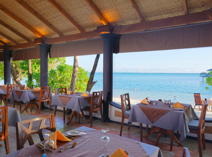Главный ресторан отеля для гостей водных вилл и высоких категорий номеров, работает по системе шведский стол. Завтрак 7:30-10:00, обед 12:30-14:00, ужин 19:00-21:00