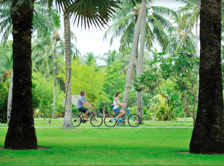 Остров утопает в зелени и здесь, помимо естественной фауны, много ухоженных парков и цветников, овощных и фруктовых плантаций, есть банановая плантация, розарий, сад орхидей. Лагуна очень широкая с обеих сторон острова, удобная для плавания, снорклинга, водных видов спорта. Цвет воды настолько насыщенный и яркий, что невозможно оторвать взгляд. Есть домашний риф, бассейн с пресной водой.