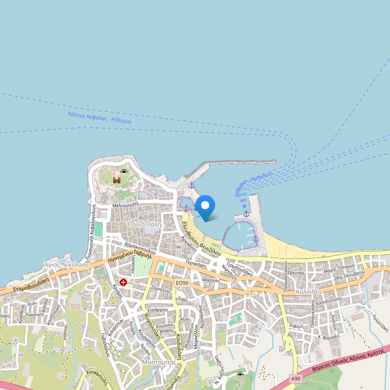 Отель расположен в центре города Rethymno, в 65 км от города Chania. Международный аэропорт находится в 80 км от отеля.