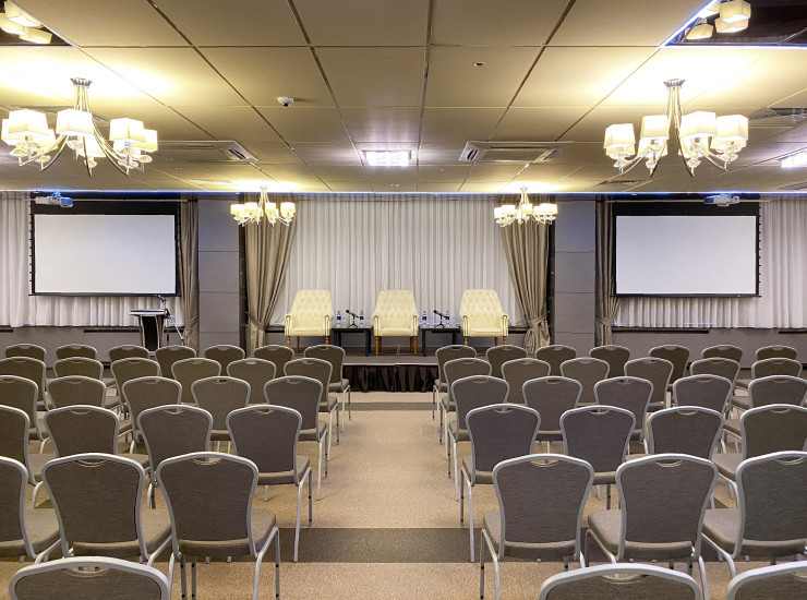 Комфортабельный зал с европейским дизайном оснащен современным оборудованием, системой кондиционирования, системой звукоусиления. Прекрасное место для организации конгрессов, больших конференций, семинаров, бизнес-мероприятий любого формата, а также корпоративных праздников или свадьбы на большое количество человек.