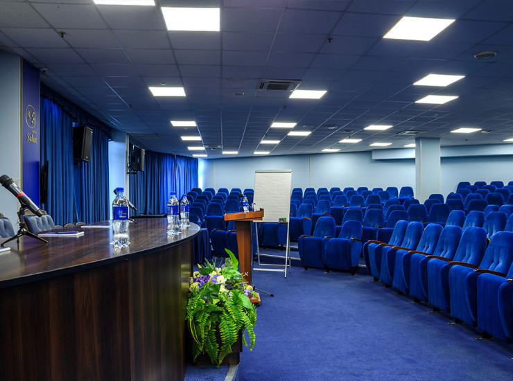В конференц-зале "Сапфир", площадью 361 м2. расположены 324 кресла с откидными столиками, сцена с президиумом, мультимедийный проектор, большой проекционный экран, звукоусилительная аппаратура, кондиционер. Есть возможность подключения ноутбука/компьютера к мультимедийному проектору.