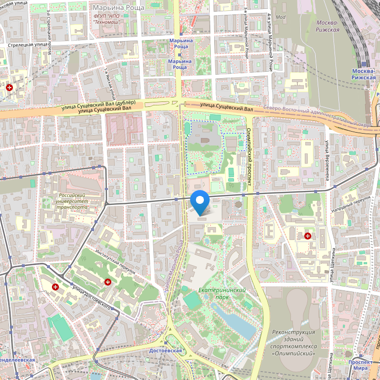 Отель расположен в центральной части Москвы, недалеко от театра Российской Армии, Музея Вооруженных Сил, Спорткомплекса «Олимпийский» с плавательным бассейном и концертным залом, Екатерининского парка, «Страны Чудес дедушки Дурова». Всего лишь 10 минут на московском метрополитене отделяет гостиницу от сердца столицы и России – Московского Кремля и Красной площади.