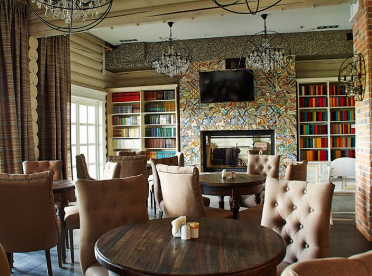 Летом можно пообедать на открытой террасе с видом на озеро, а зимой сидя у камина и читая книгу или журнал из коллекции нашей библиотеки.