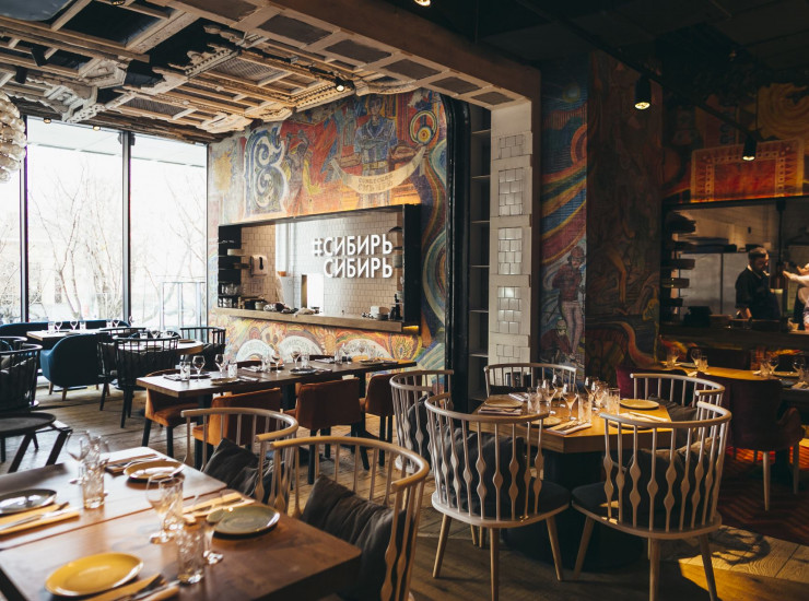 Ресторан #СибирьСибирь заведение известного ресторатора Дениса Иванова. Основная специализация кухня сибирского региона, современная и традиционная. Интерьер заведения также переносит гостей в этот далекий и самобытный регион: потолок украшен резными ставнями, стены напоминающим лед стеклом, советской мозаикой и самоварами.