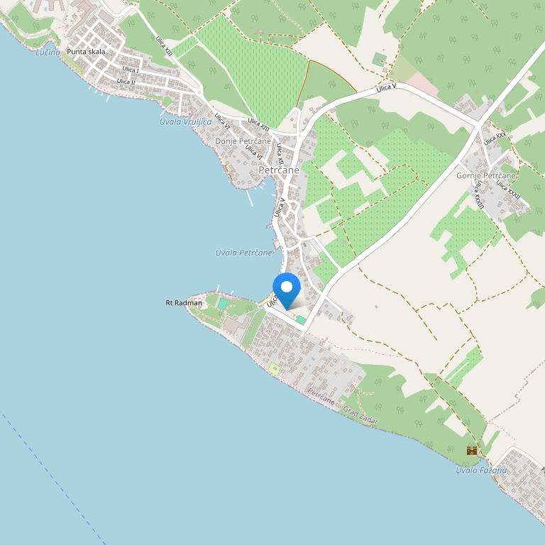 Отель расположен на полуострове, в пяти минутах ходьбы от деревни Petrcane, которая находится в 12 км. от Задара. Ближайший аэропорт – аэропорт Задара.
