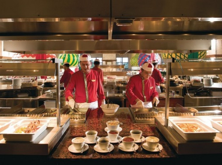 В главном ресторане Вы сможете сами создавать блюда по своему вкусу и наблюдать за приготовлением блюд .