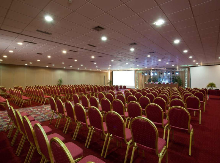 Конференц-зал вместимостью до 1000 участников. В комнате есть театр с передвежными звуконепроницаемыми перегородками, и может быть разделена на четыре комнаты, скорректирована и персонализированна согласно требованиям клиентов. Для организации выставок и семинаров, есть выставочный зал размером 256 квадратных метров. Также доступны 8 меньших залов, для совета директоров, подкомитетов или других мероприятий, каждый из которых вмещает от 12 до 20 человек. Бассейн в распоряжении организаторов. Мы предоставляем полный пакет услуг и удобств, дополнительный телефон с прямым набором номера и высокоскоростное подключение к Wi-Fi Интернету, по запросу.