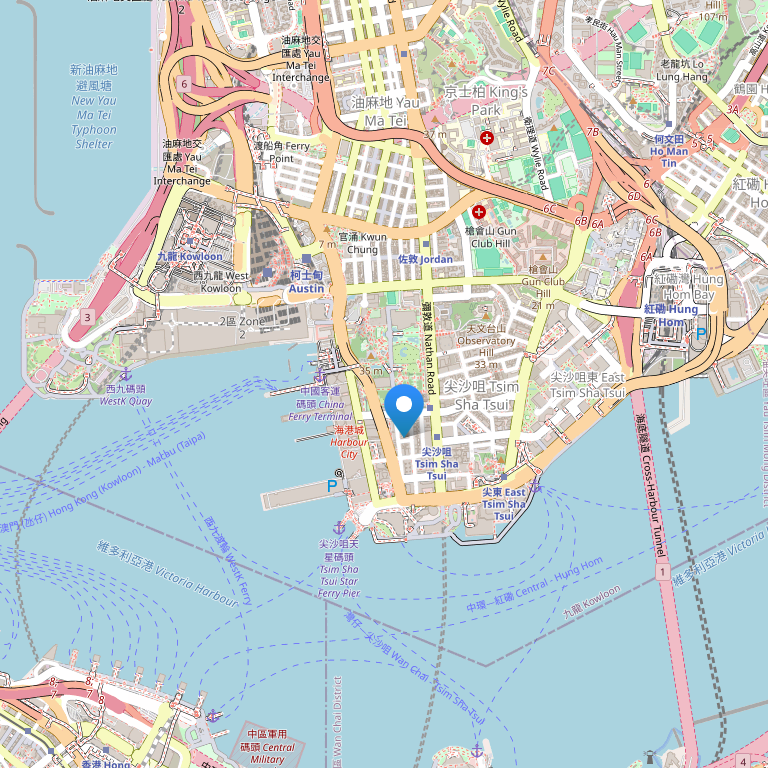 Расположен на полуострове Kowloon, в окружении богатой туристической инфраструктуры: рестораны, бары, магазины, бутики. В нескольких минутах ходьбы от пристани Star Ferry и метро, в 45 минутах езды от аэропорта и в 5 минутах от железнодорожного вокзала.