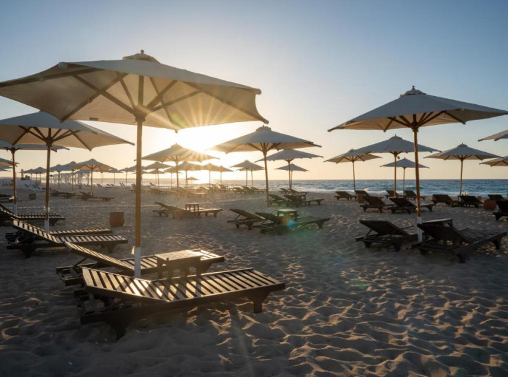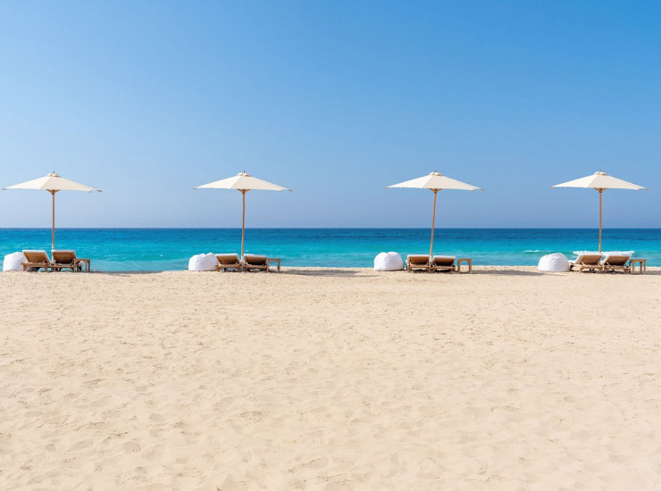 1 1ПляжПесчаный роскошный пляж с белым песком и бирюзовой вожой Средиземного моря оборудован зонтиками и шезлонгами. View more