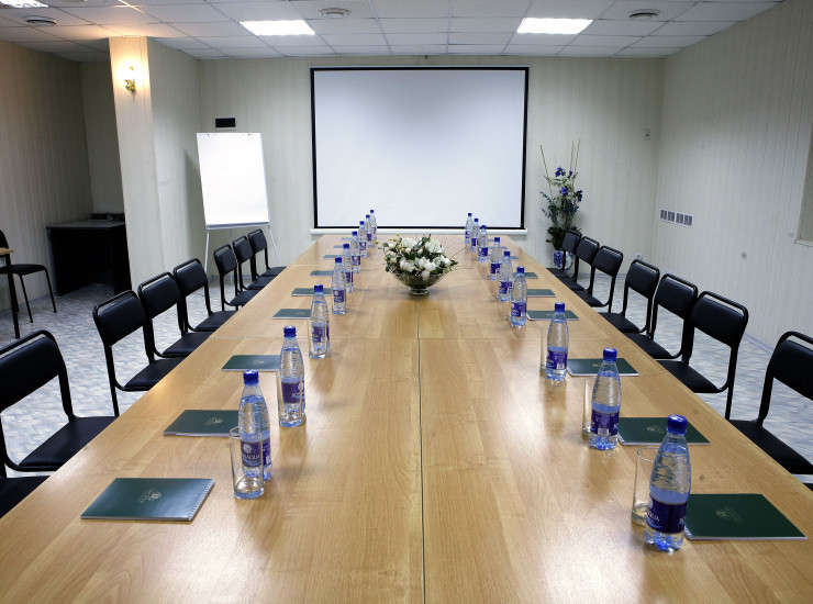 Небольшой конференц-зал для деловых встреч и семинаров, который подчеркивает прекрасное месторасположение живописным видом на Волгу.