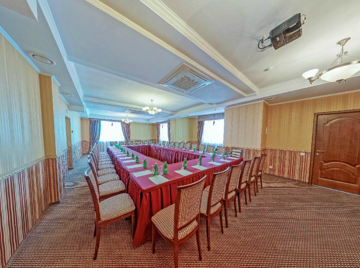 1 1Конференц-зал КрасныйВ гостинице Эрмитаж созданы все условия для проведения конференций, семинаров и деловых встреч. К услугам гостей - конференц-зал Красный - 75 кв.м на 80 посадочных мест. Предоставляется все необходимое оборудование. View more