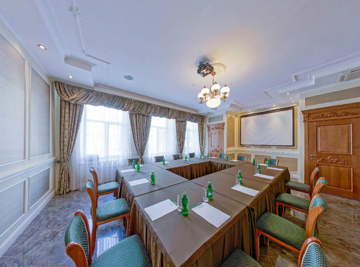 1 1Конференц-зал ЗеленыйВ гостинице Эрмитаж созданы все условия для проведения конференций, семинаров и деловых встреч. К услугам гостей - конференц-зал Зеленый - 37 кв.м на 40 посадочных мест. Предоставляется все необходимое оборудование. View more