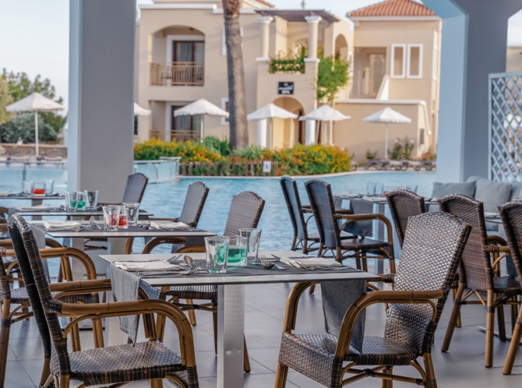 Ресторан интернациональной кухни возле бассейна.