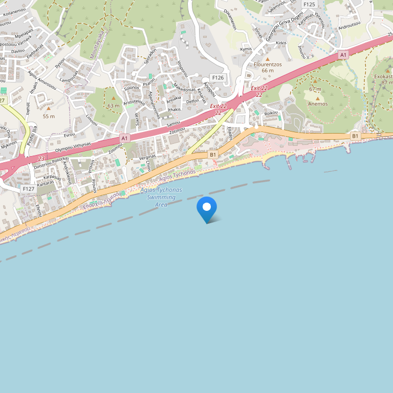 Отель находится в 7 км от центра города. Рядом с аквапарком. За пять минут вы дойдете до песчаного пляжа (через дорогу), а до центра туристической зоны Potamos Yermasoyias Вы дойдете за 15 минут. До моря - 300 м, до аэропорта 72 км.