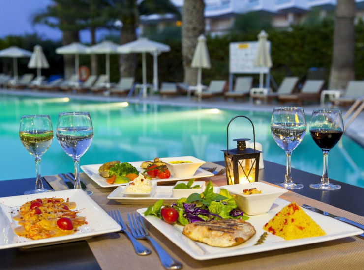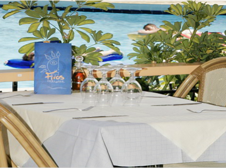 1 1Dionysos a la carte restaurantDionysos a la carte restaurant is situated next to the 3 pools in the Aparthotel building serving breakfast, lunch and dinner in a true holiday atmosphere. The restaurant has a total seating capacity of 200 people and offers a carefully balanced selection of dishes to satisfy all tastes while the in-house bar serves fresh juices, smoothies, refreshing drinks and alcoholic beverages in the terrace. Buffet themed nights with entertainment are organized every Wednesday (Greek night) and Friday (barbeque night) and can be booked locally at the hotel. View more