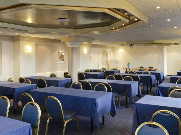 1 1Blue Room - Meeting RoomsThe blue room, located on the ground floor next to the Green room, is a multi-purpose meeting room with natural lighting fully equipped with a sound system, wireless microphones & Internet, slide projector, over head transparence (OHP) and a large screen. Telephone, fax, a copy machine as well as technical service is available to ensure a smooth operation of your private meeting or any other event hosted. Any specific audio visual equipment request may be obtained with advanced notice. View more