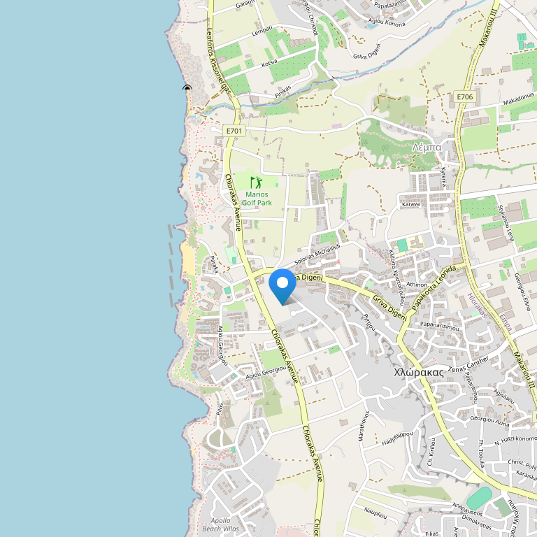 Расположение: в 6 км от центра Пафоса на песчано-галечном пляже.
