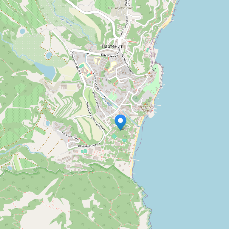 Отель расположен на Украине в Партените, на самом берегу Черного моря в партенитской долине, прямо у подножия легендарного Аю- Дага, на территории уникального старинного парка площадью 42 гектара.