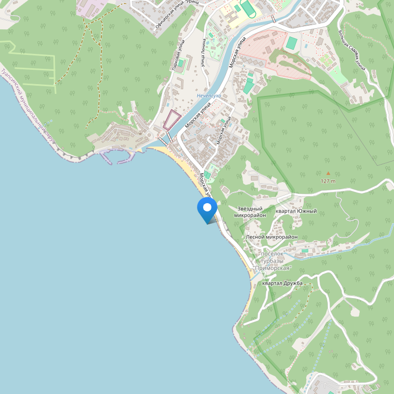 Гостиница расположена прямо на берегу моря в поселке Новомихайловский Туапсинского района, в 17 км от аквапарка «Дельфин» и дельфинария «Аква-мир» в пос. Небуг. До ж/д вокзала - 35 км, до аэропорта Краснодара - 140 км, до аэропорта Адлера - 200 км.