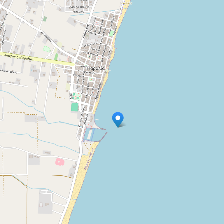 Отель расположен в Катерини Паралия в области Пиерия в Греции, всего в 20 метрах от пляжа, имеет захватывающий вид на великолепный Олимп, а также неподалеку от основных туристических достопримечательностей.