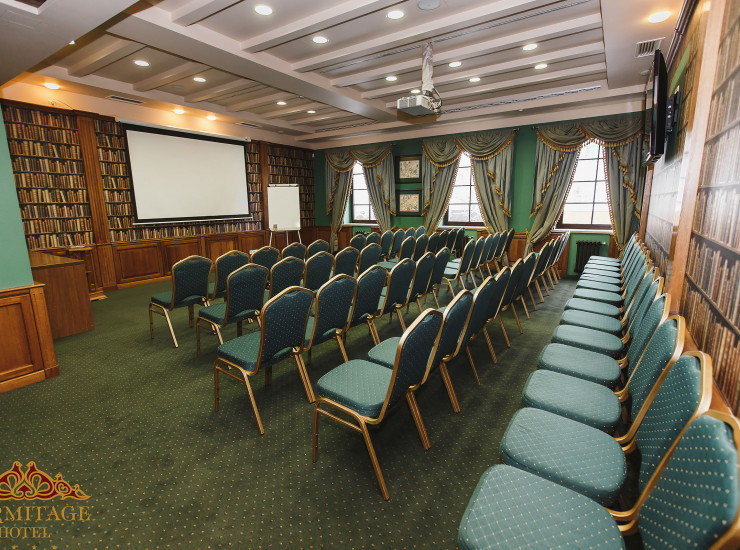 Учитывая данную тенденцию, в отеле HERMITAGE обустроен современный, хорошо оснащённый конференц-зал Ex Libris. Он идеален для проведения заседаний, совещаний, круглых столов, семинаров и тренингов. Название зала (от лат. из книг) обусловлено его стилистическим оформлением под библиотеку. Такая обстановка создаёт позитивное рабочее настроение, обеспечивая продуктивность намеченному мероприятию.