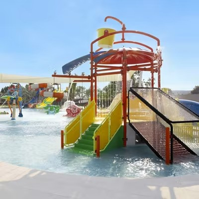 Для маленьких гостей есть два небольших слайда и детская зона с игровой площадкой с такими конструкциями, как грибы, водные струи и ведро с водой, в то время как Splash Zone предлагает безопасное место для игр малышей. В комплексе также есть потрясающая зона с 4 бассейнами с видом на море и детским бассейном . Также есть полностью частный пляж, окруженный пальмами, для эксклюзивного использования и удовольствия гостей, а также зона с 10 кабинками для принятия солнечных ванн и наслаждения хорошей погодой региона.