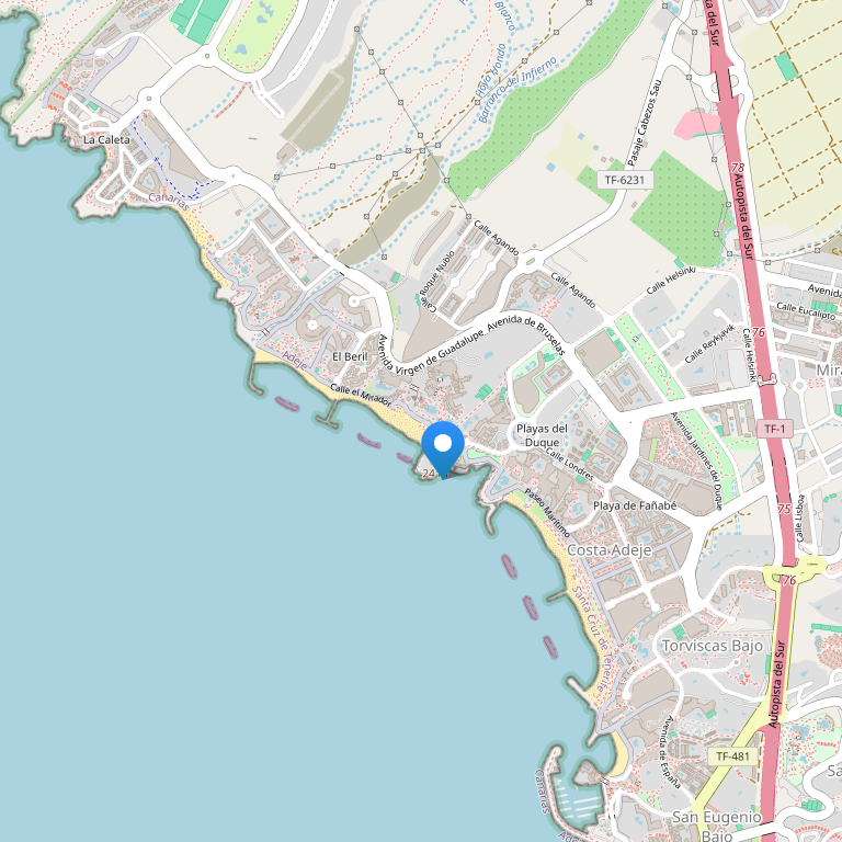 Club Altamira находится в местечке Ла Калета, на первой линии Атлантического океана и элитного пляжа Playa del Duque. Это место является частью самого крупного и развитого туристического центра на острове Тенерифе — города Лас Америкас. Название клуба, в переводе с испанского, означает «вид свысока». Действительно, из всех апартаментов открывается шикарный вид на Атлантический океан и соседний остров.