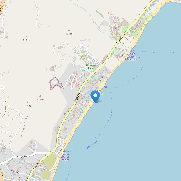 Расстояние от отеля до центра Фалираки составляет 2,5 км, до исторического центра Родоса - 12 км.