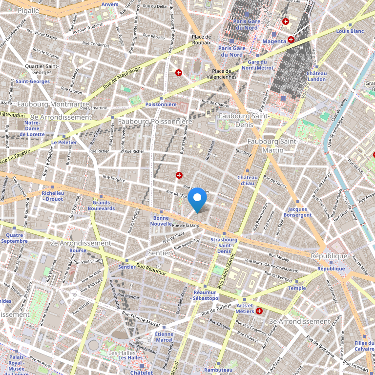 Отель расположен в 10 округе Парижа, откуда вы легко доберетесь до большинства туристических и культурных достопримечательностей Парижа. Напротив отеля (в 100 метрах) находится станция метро Chateau d'Eau линия 4. Эта линия проходит с севера на юг и предлагает прямой доступ к Северному вокзалу де Шатле и Chatelet Les Halles. Эйфелева башня, Елисейские поля – в 20 минутах езды. Остановка автобуса (линии 38, 39 и 47) - в100 метрах от отеля.