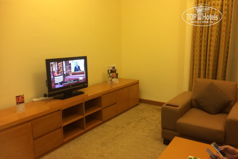 Много читала отзывов, что самые лучшие номера в 3ей башне.. но мы стеснительные и не стали блистать умом и сообразительностью, понадеялись на авось.. авось повезло - предложили номер для не курящих, мы согласились, т.к. Сами не курим. Поселили в первой башней на 6 этаже. Рядом с подсобным помещением (номер 1612). Номер очень понравился, все чисто, без посторонних запахов, есть балкон. Сторона выходит с видом на соседнюю башню. Гостиная с телевизором и холодильником + эл. Чайник, ( по два пакетика чая, кофе, коричневый и белый сахар, сахарозаменитель, сливки), один совмещённый санузел с душевой (ванны нет) и рядом ещё один туалет, большая спальня, сейф у нас был бесплатный. Спать нам ничто не мешало, дороги мы не слышали - (может спали крепко), иногда только мешало громыхание из подсобки, но это пару раз и в то время, когда мы не спали. Туристы предупреждали, что тут британские розетки, поэтому мы дома купили универсальный переходник на разные розетки и горя не знали.