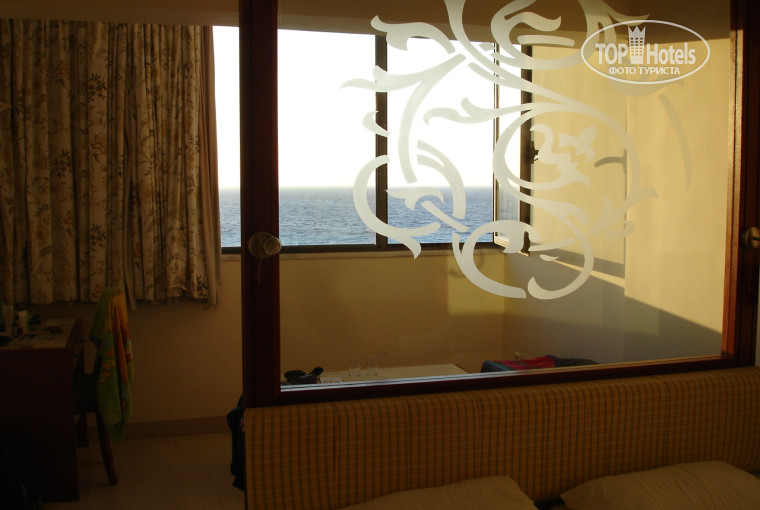 Отель оказался очень даже милым, городского типа. Номер очень просторный, не новый, без излишеств, всё просто. Без всякой доплаты попросили номер с видом на море, и нам не отказали))) Есть номера, окна которых выходят во двор (совсем в притык к соседнему зданию) или на дорогу. Наверное, там было бы не очень прикольно))) В отзывах читали, что минусом является отсутствие балконов. Можно согласиться, если вид на море-это не помешало бы. Кстати, в отеле есть номера с крошечными балкончиками, по одному на каждом этаже, но менять не пробовали даже. Кондиционером в номере не пользовались, открывали окно, и в номер задувал свежий ветер с Эгейского моря.