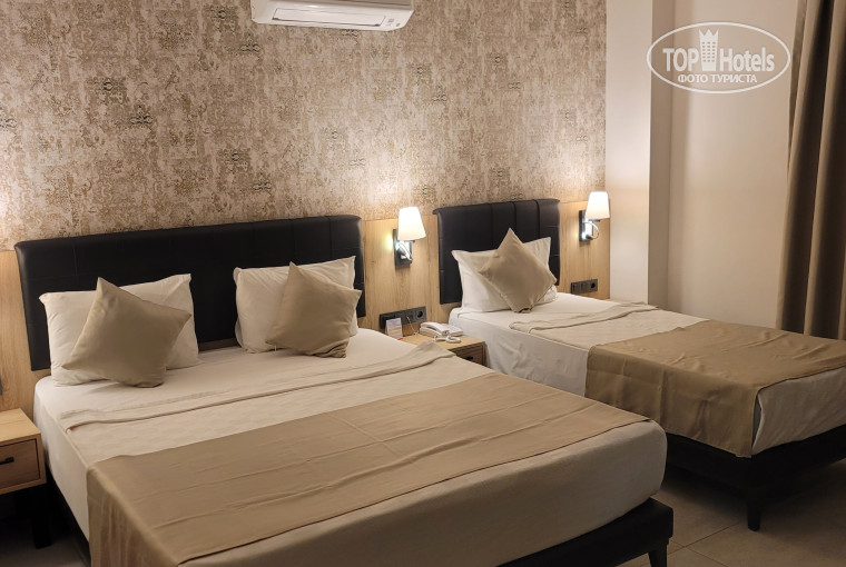 Хороший и уютный отель..рекомендую для спокойного отдыха.Везде очень чисто..заход в море страдает..по питанию все хорошо..но отель находится в посёлке где нет магазинов..тц ..клубов.Есть ресторан а ля карты..норм..понравилось..Пляж частный..бесплатные напитки и шезлонги..