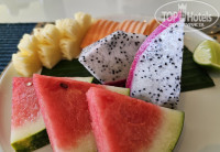 Питание в отеле устроено следующим образом. Завтрак - шведский стол, очень неплохой. Один вид свежевыжатого сока (манго, маракуйя или кокосовая воды), разный ассортимент фруктов, минимум 3 вида (арбуз, дыня, манго, маракуйя, ананасы, драгонфрут и т.д.). Яйца варёные, жареные, омлет. Несколько горячих блюд тайской, индийской, китайской кухни. Сыр, ветчина, овощи, рис, сосиски, выпечка. Приличный кофе из кофемашины.